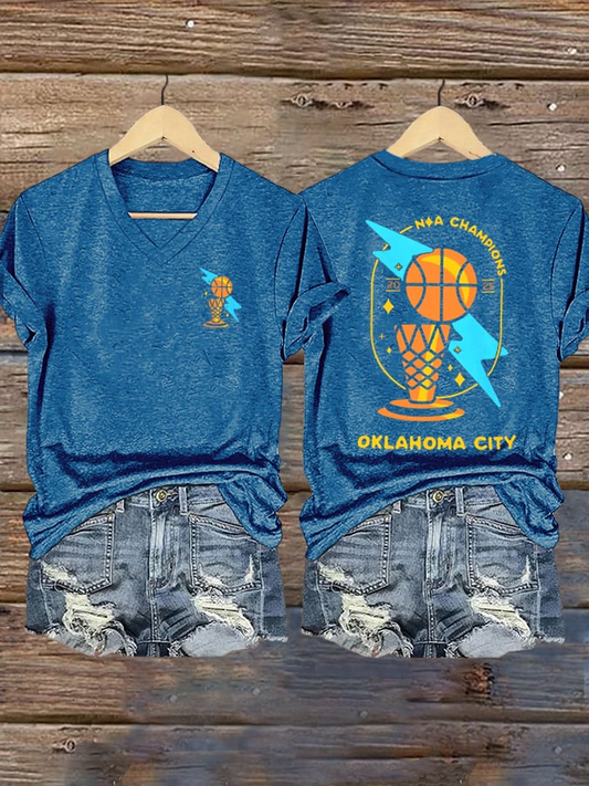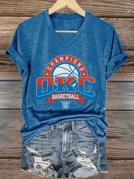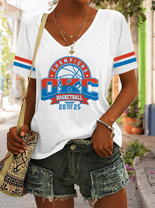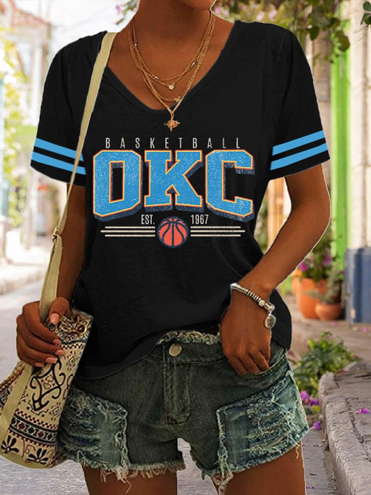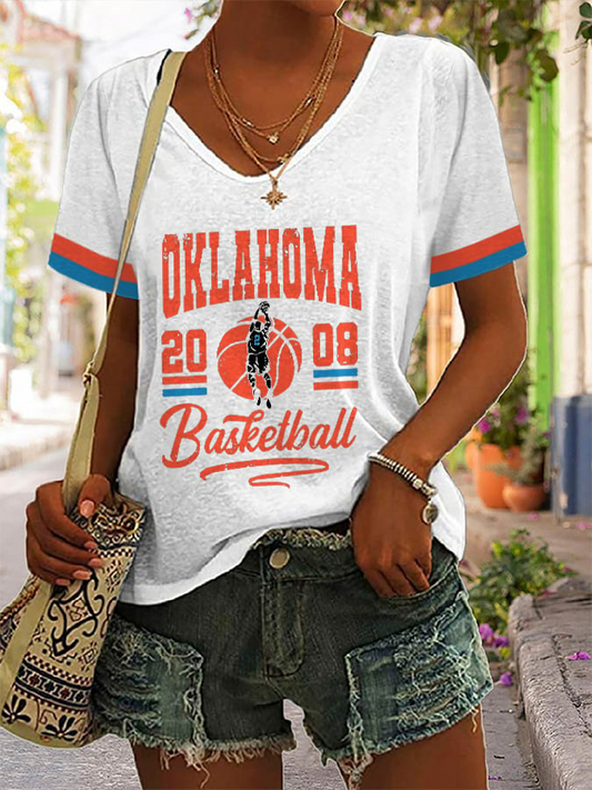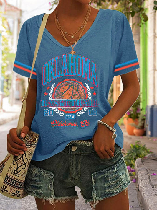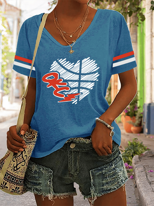 Women's Basketball Print V7 V-Neck T-Shirt DDT NTL