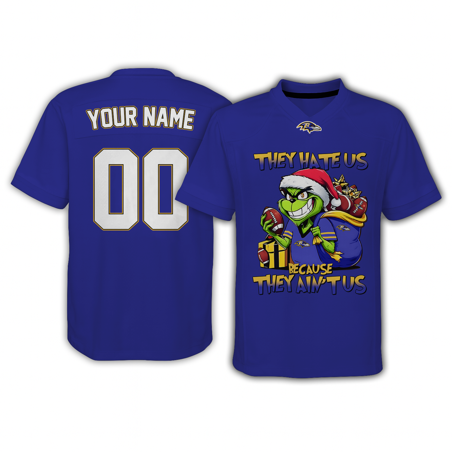 BAL x NFL They Hate Us Because They Ain't Us Grinch Christmas-V-neck Short Sleeve Jersey DatND DVT