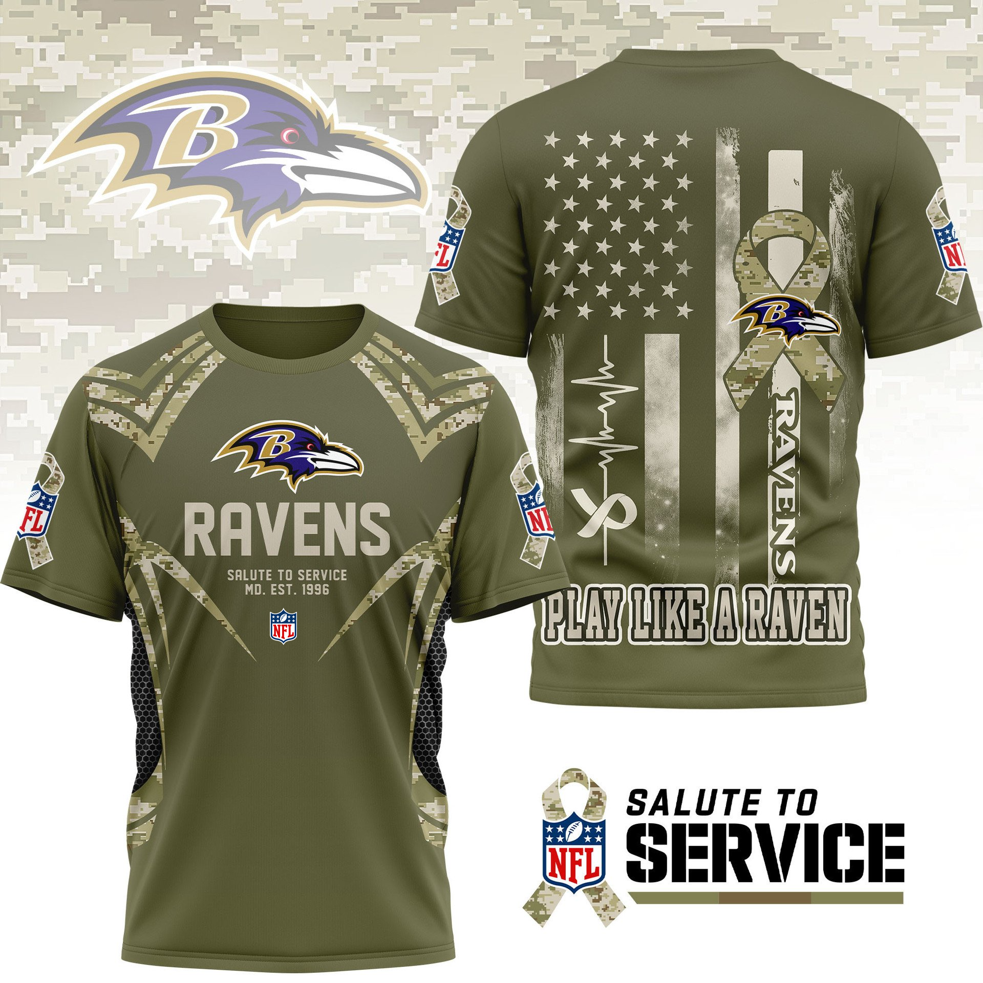 BR Premium NFL Salute to Service Camo 3D Shirt DDT CTND