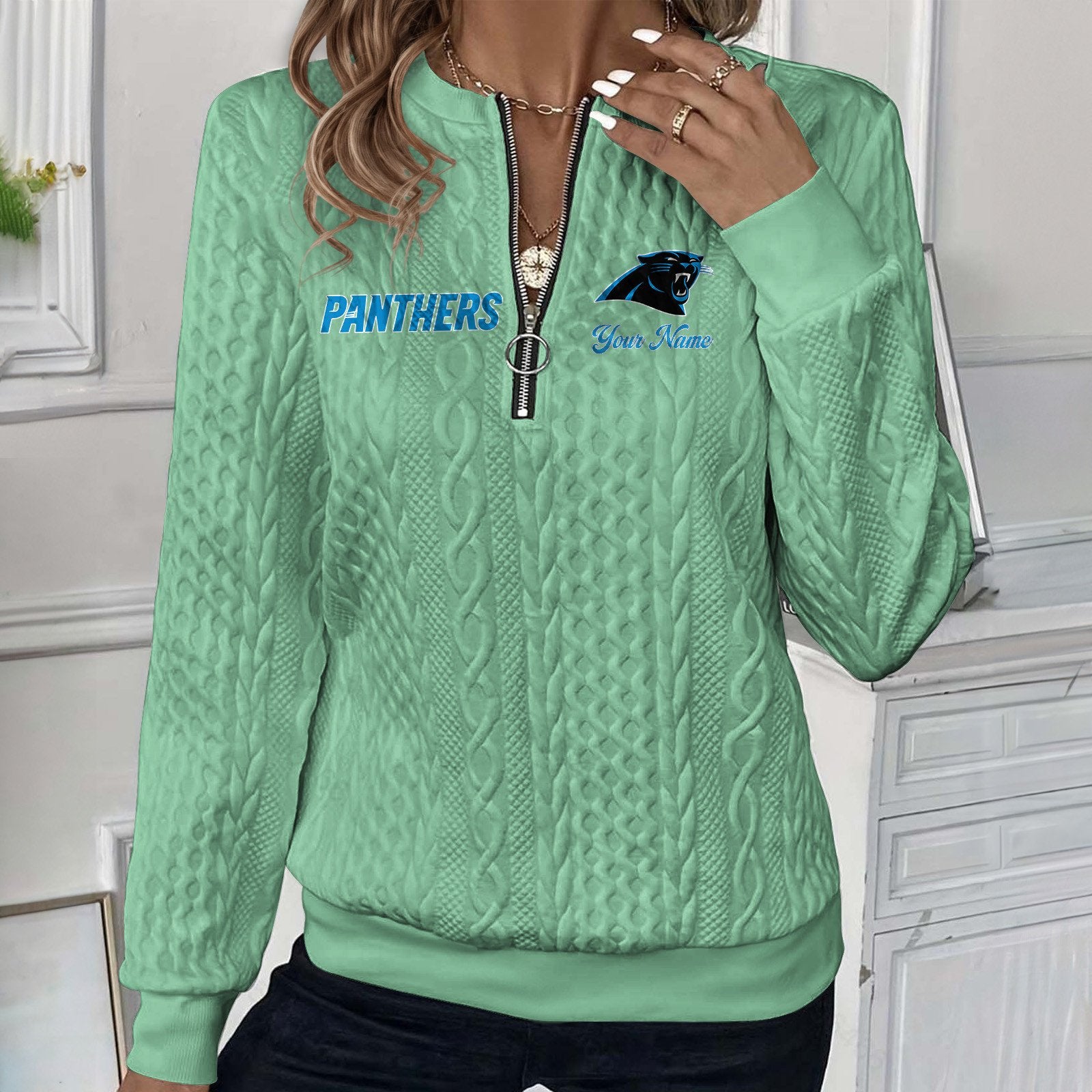 Stay cozy and chic in this stylish half-zip pullover featuring a soft, 3D cable-knit textured fabric. Made from high-quality polyester, it offers a warm yet lightweight feel — perfect for casual days, outdoor activities, or relaxing at home. The ribbed cuffs and hem add a flattering fit, while the metal ring zipper detail gives it a modern touch.
