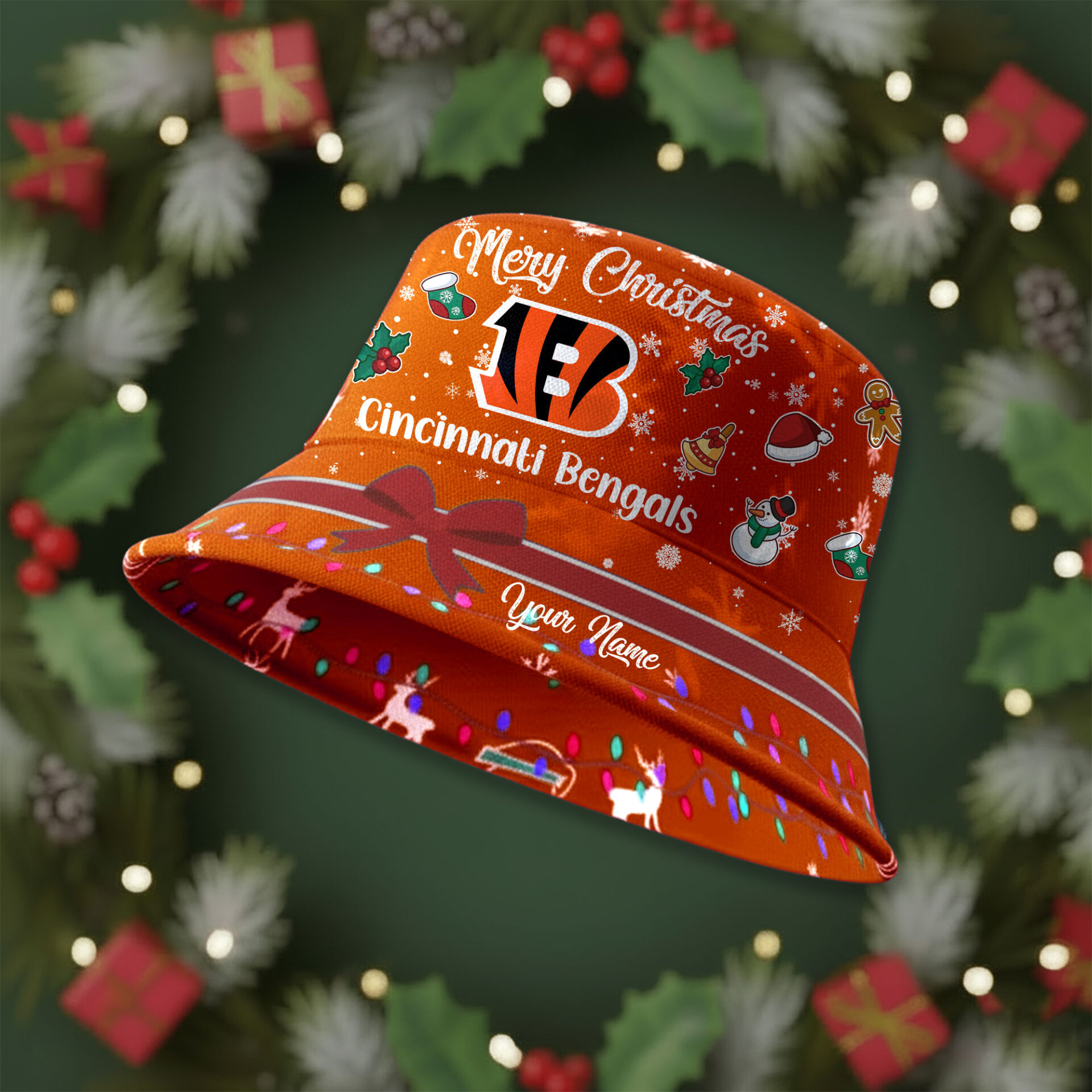 CIN Premium NFL Merry Christmas Bucket Hat DDT CTND