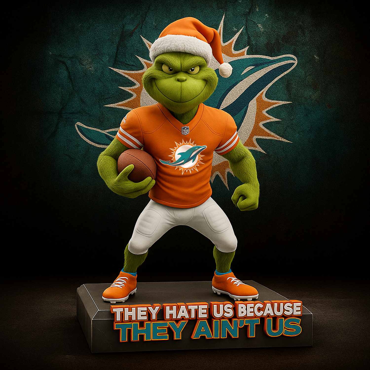Fly high and stay festive with the Grinch Christmas Acrylic Art Block 🦅💚🎅! Featuring the mischievous Grinch rocking a beanie and jacket, holding a green-and-silver football under glowing holiday lights — it’s the perfect fusion of Christmas fun and pride.