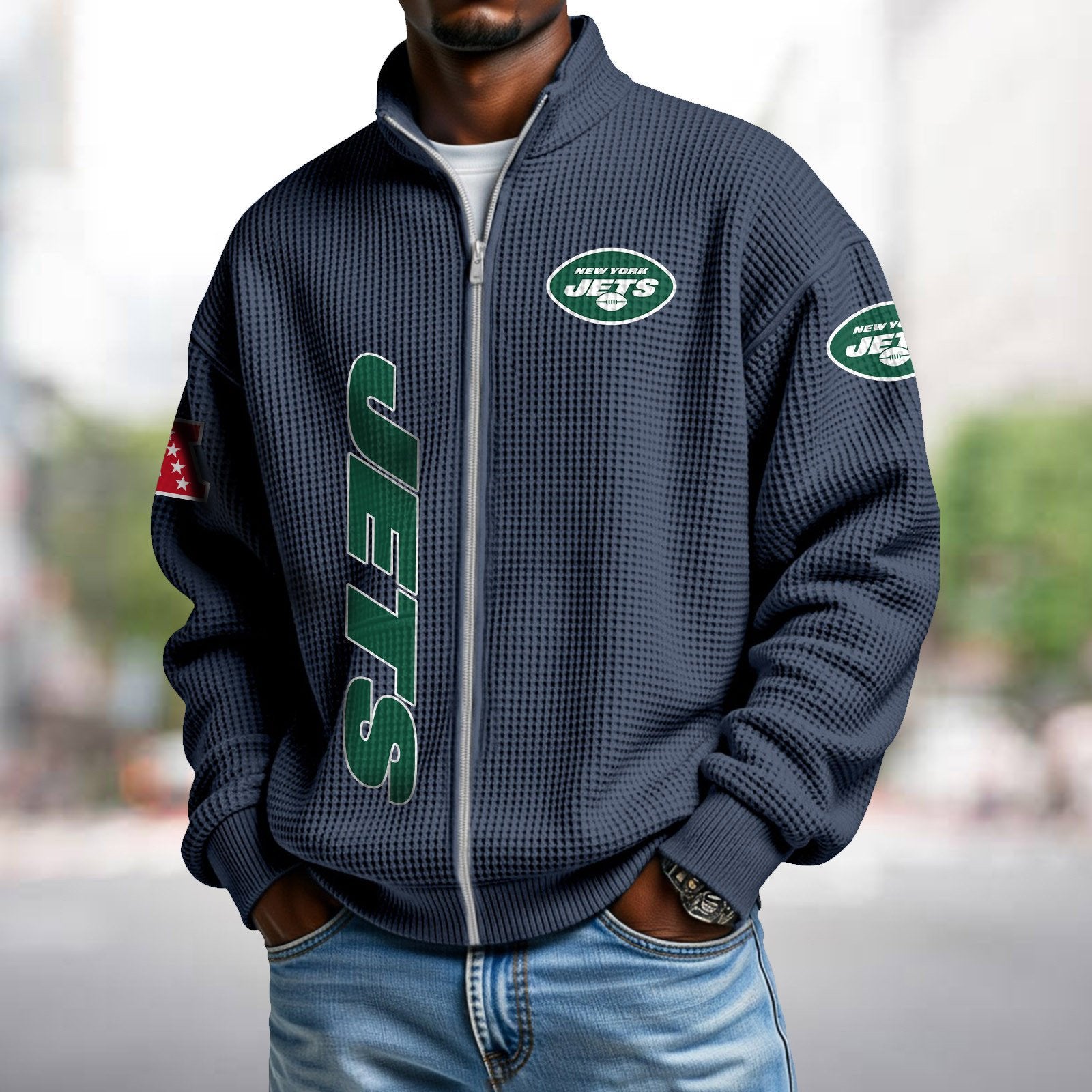 NYJ x NFL Waffle Zip-Up Sweatshirt DATND TANTD