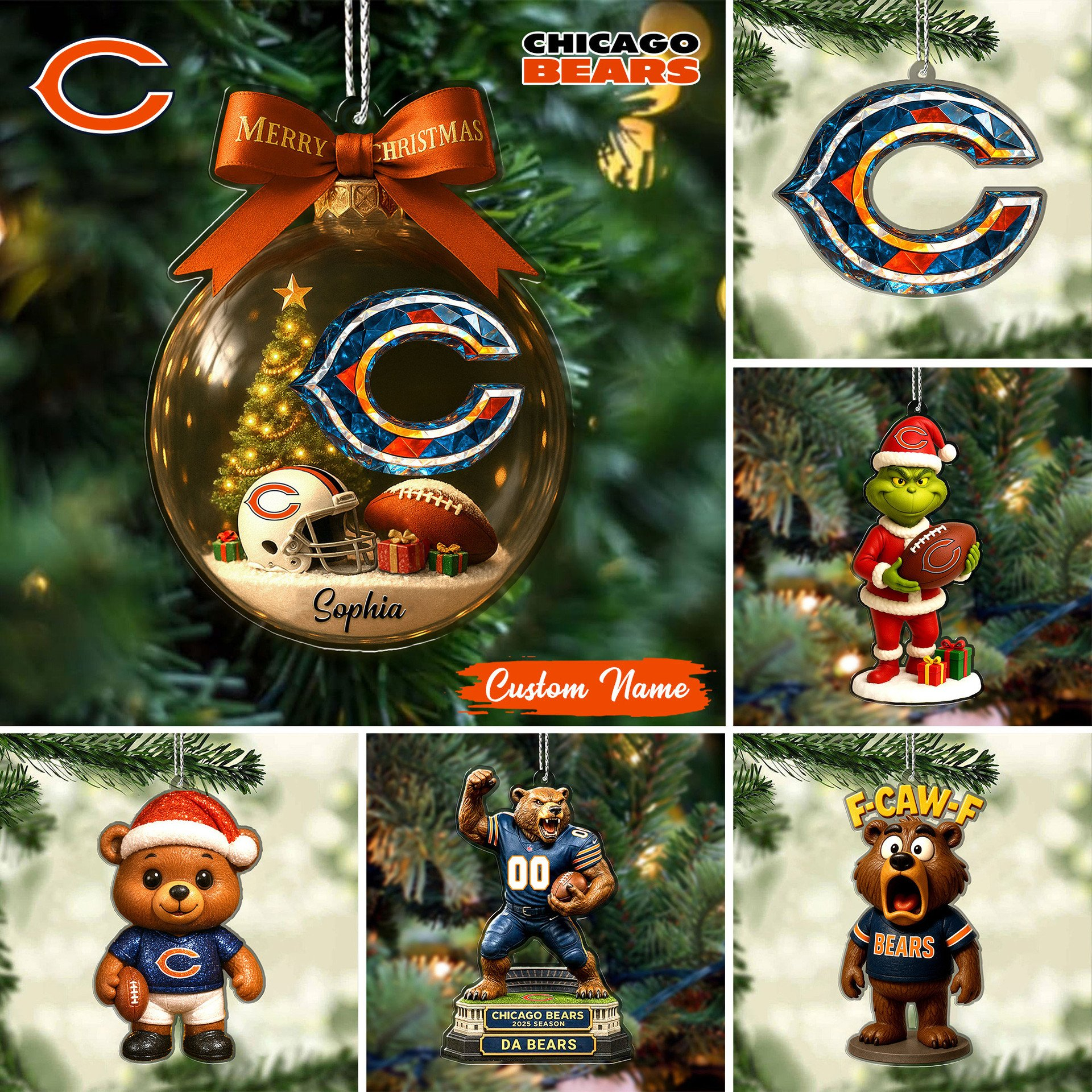 Premium NFL CHI Chrismast Ornament V4 NMD TTV