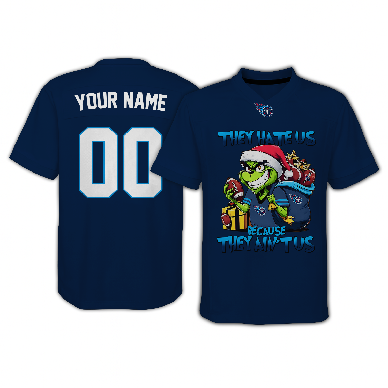 TEN x NFL They Hate Us Because They Ain't Us Grinch Christmas-V-neck Short Sleeve Jersey DatND DVT