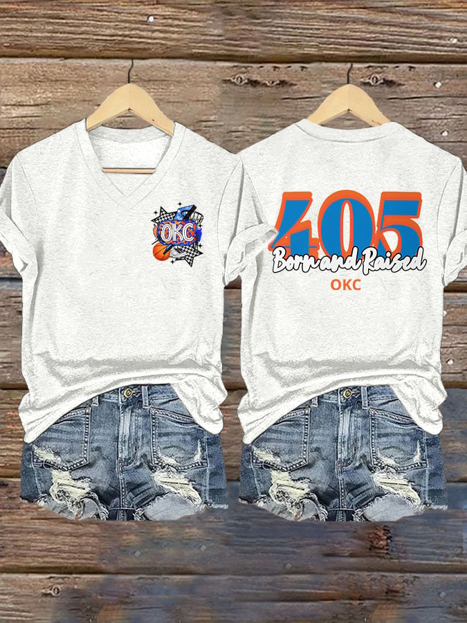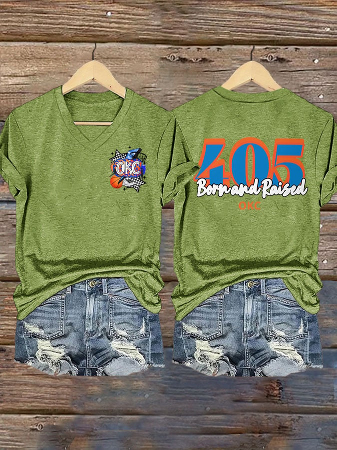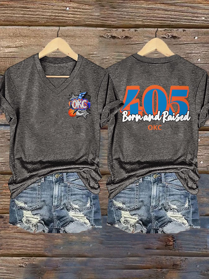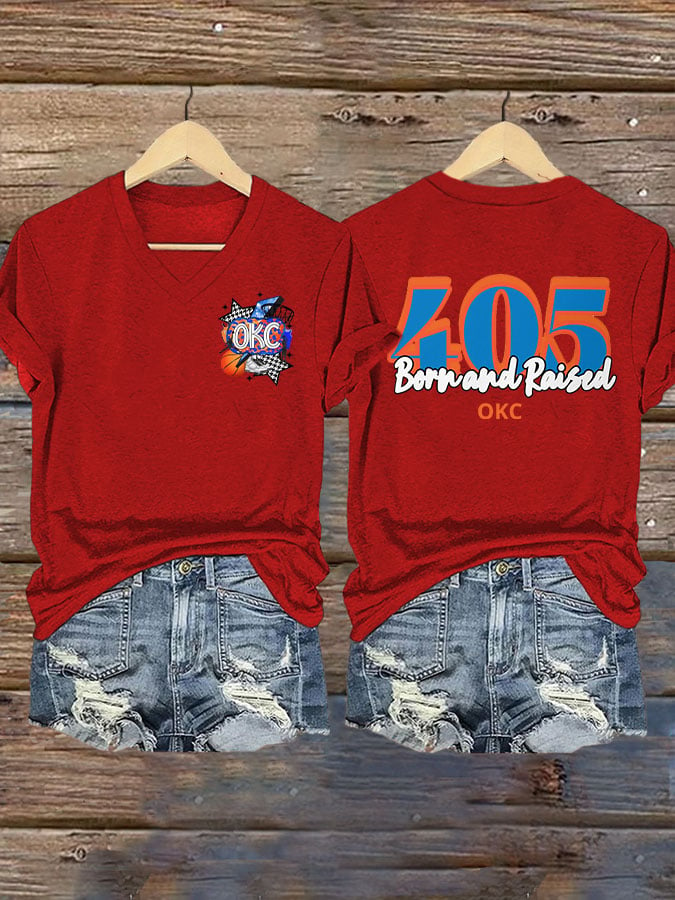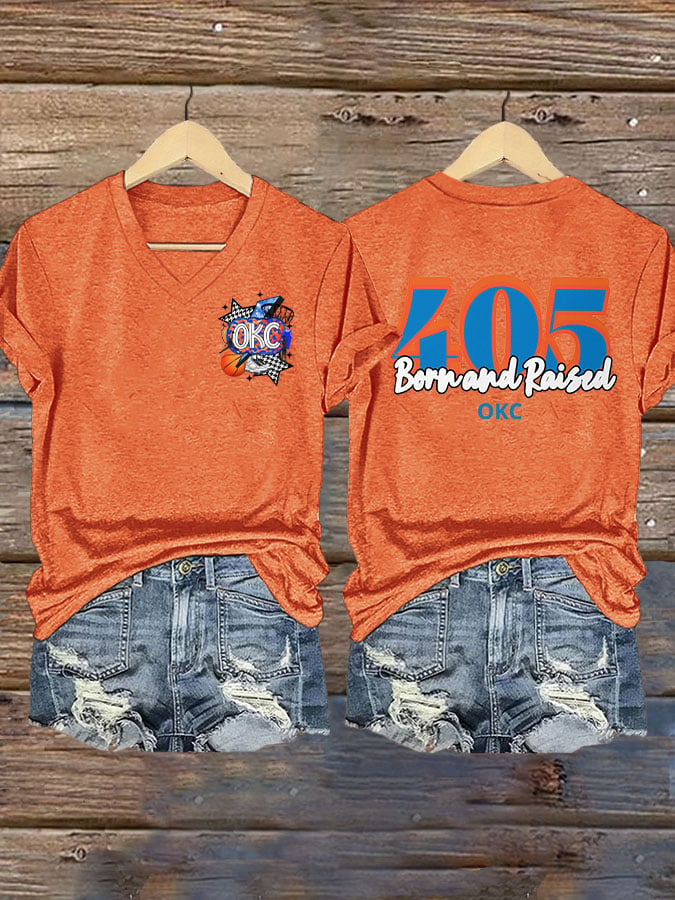 Women's 405 Born And Raised Print V Neck T-shirt DDT NTL