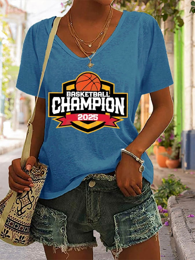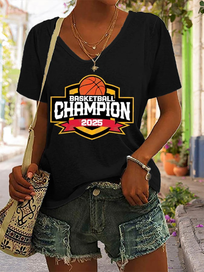 Women's Basketball Print V28 V-Neck T-Shirt DDT NTL