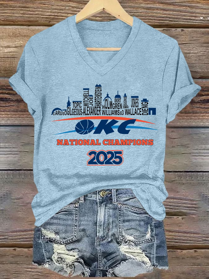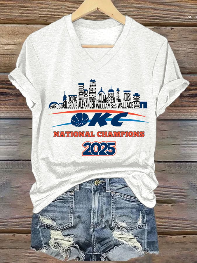 Women's Oklahoma 2025 Champions Basketball Print V3 V-Neck T-Shirt DDT NTL
